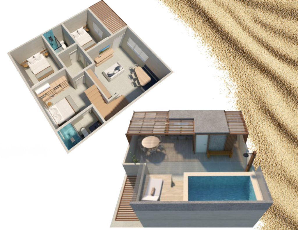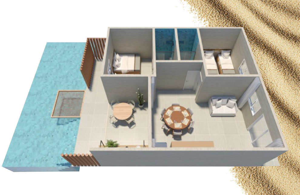 Apresentamos três tipologias de studios e quatro de apartamentos que unem sofisticação, conforto e uma vista espetacular do Caribe brasileiro.